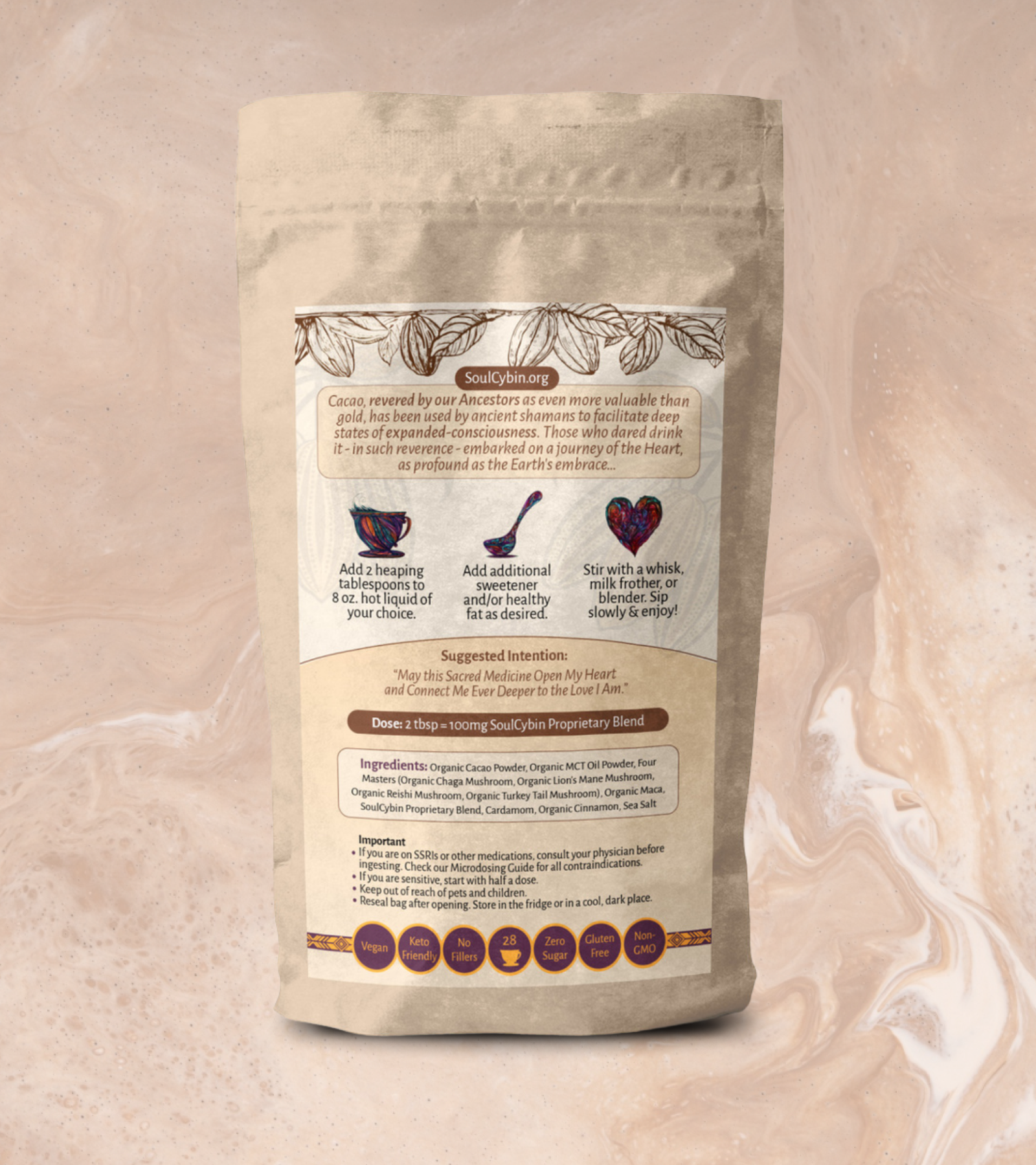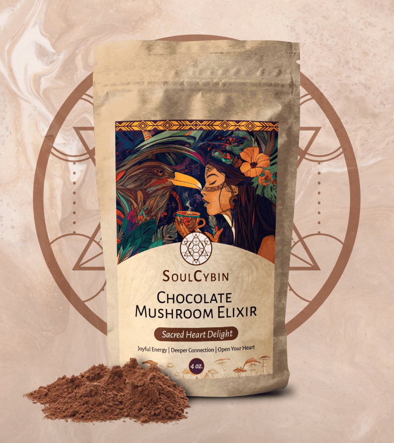The Chocolate Mushroom Elixir – “Sacred Heart Delight” is a delicious and heartwarming way to microdose—crafted to elevate love, connection, and joyful presence. With 28 servings per bag, each providing 100 mg of our SoulCybin Proprietary Blend, it turns your daily ritual into a moment of magic.